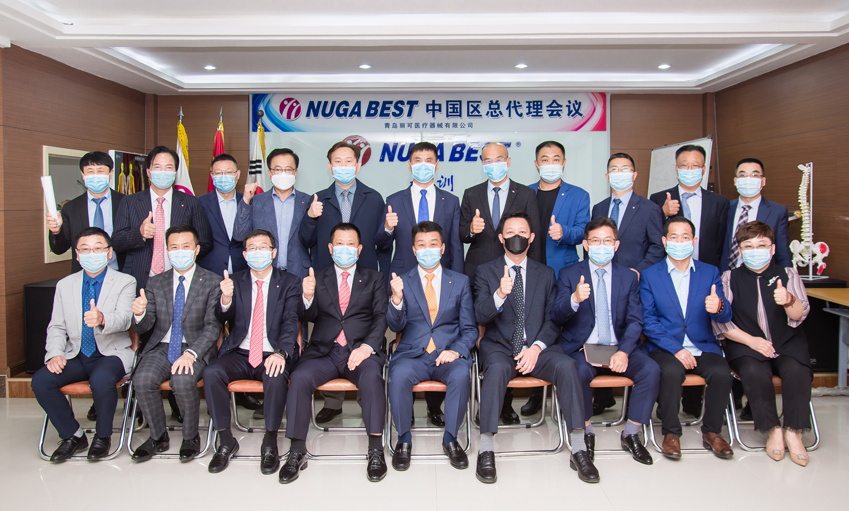 2020年5月14日,NUGA BEST中国区总代理会议在青岛总公司举行。崔熙准总经理、各位任职员以及中国各区域的总代理共同出席了此次会议。